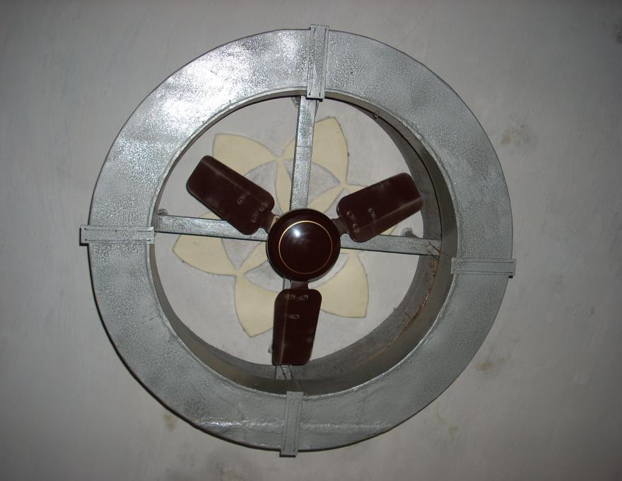 The ceiling cooler is fitted around the ceiling fan and there is an automatic water supply. The ceiling cooler has been tested at Electronics Test and Development Centre and its working was found to be satisfactory.