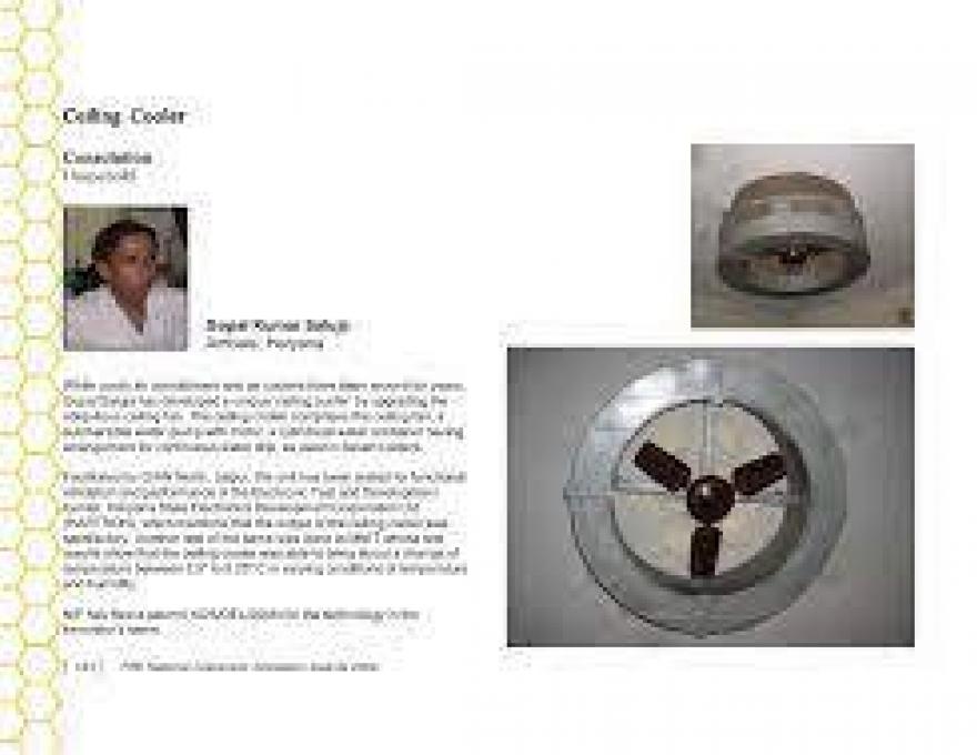 The ceiling cooler developed by Mr. Gopal Saluja has comparatively low electricity consumption, low water consumption, costs less than traditional coolers and it is inverter compatible.