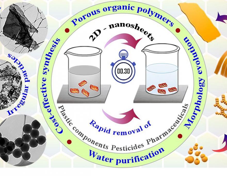 In other words, 2D nanosheet-like HPOP can remove 85%-99% of the broad-spectrum organic micropollutants, including antibiotics, endocrine disruptors, steroid-based drugs, ionic dyes, plastic precursors, pesticides, and herbicides in 30 seconds only. The water can be drinkable after a few additional treatments to remove contaminants other than micropollutants.